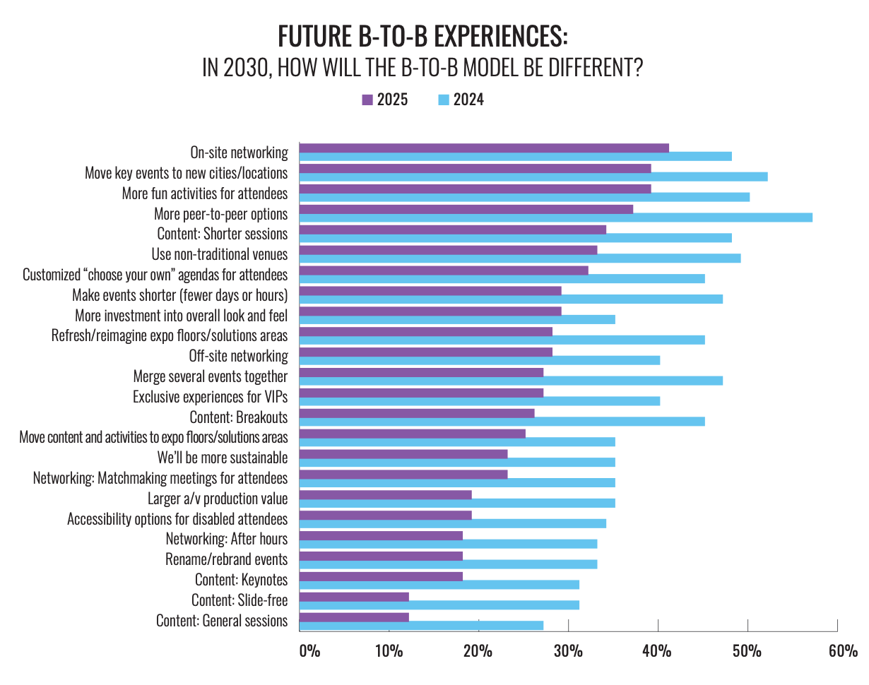 The report compares how B2B marketers today envision a 2030 event versus how they viewed it last year, offering valuable insight into the future of B2B events.