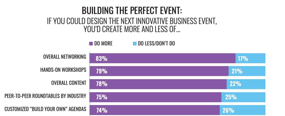 Networking will take the top spot, as B2B event marketers understand it’s the main motivator for attendees to travel.